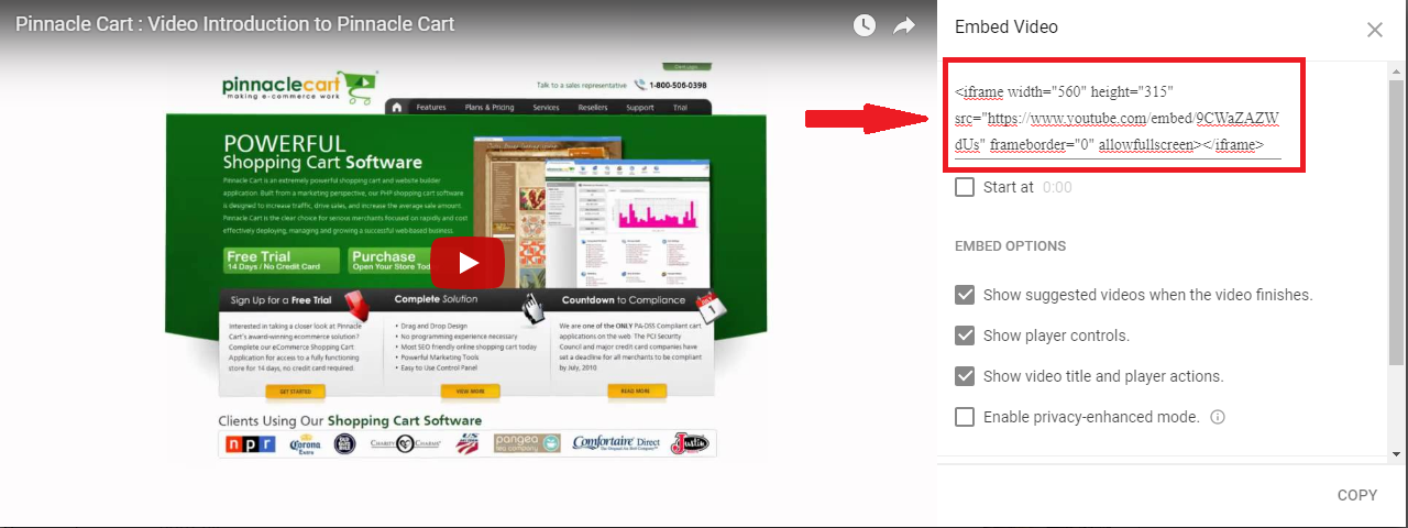 6. Paste the code, add ?rel=0&autoplay=1 to the code