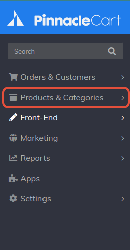 On the left-hand side of your cart, click on Products & Categories.